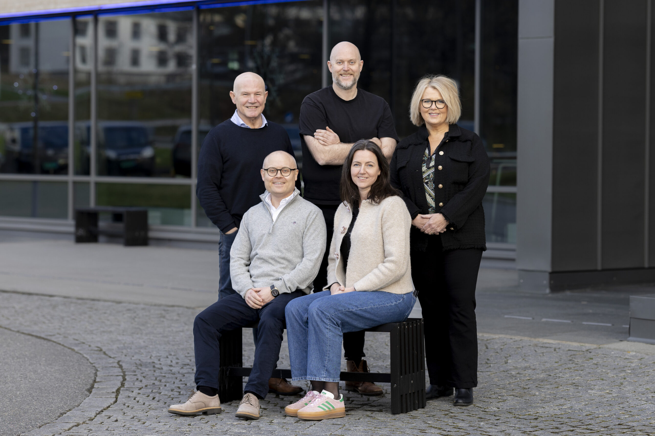 Innsatsgruppen for Stad Skipstunnel. Bak fra venstre: Bjørn Lødemel, Sverre Øvrelid Steen, Britt Giske Andersen, Tommy Sperre og Elisabeth Hatlenes. Linn Therese Osteland, Kystrederiene, var ikke tilstede da bildet ble tatt. Foto: Innsatsgruppen for Stad Skipstunnel