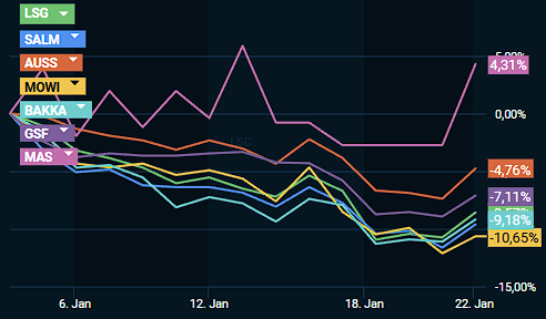 Dagens kursoppgang til tross; de fleste lakseaksjene har falt i verdi så langt i 2026. Dette er primært drevet av svakere utvikling for lakseprisen enn det investorene og meglerhusene på forhånd hadde ventet seg.