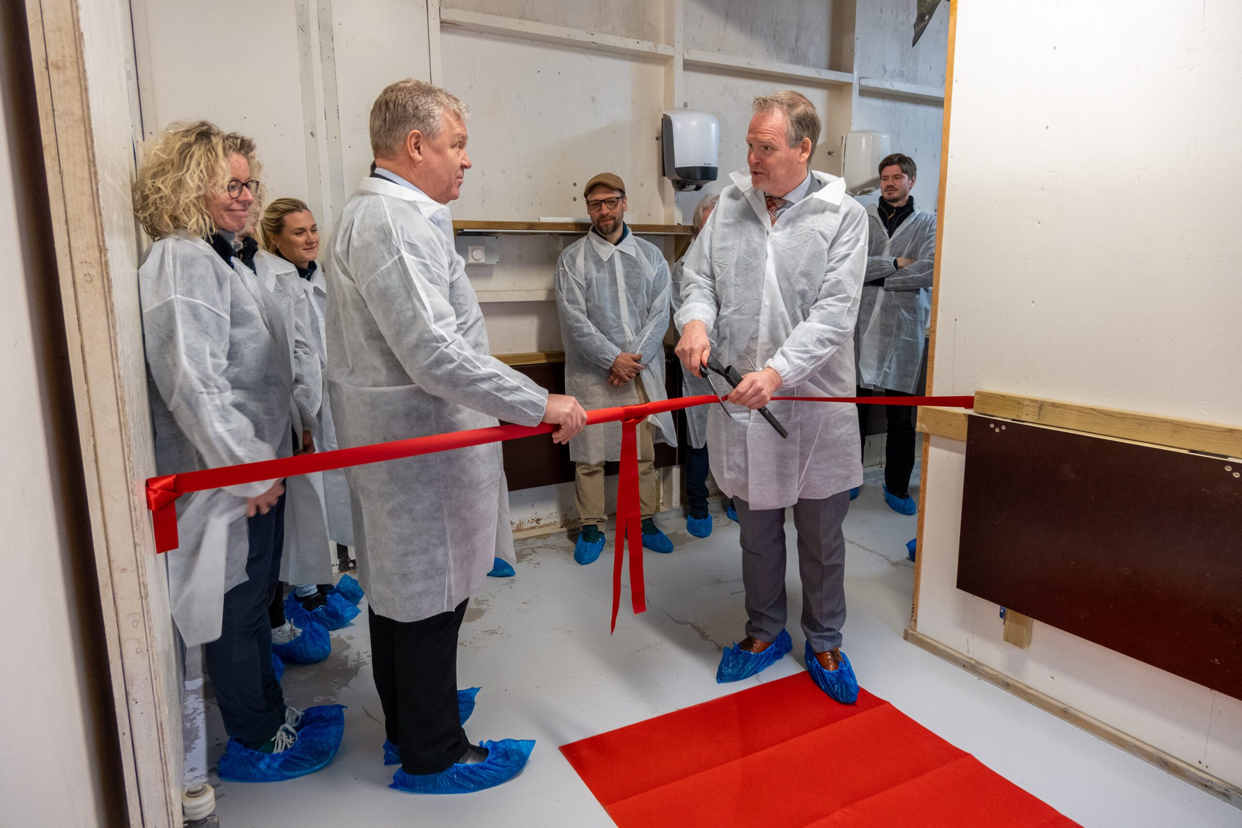 Kommunedirektør i Frogn Kommune, Georg Smedhus fikk æren av å klippe snoren da Previwo åpnet sitt nye laboratorium i dag. Selskapet forsterker forskningen på naturlige bakterier. Målet er å styrke fiskehelsen i oppdrettsnæringen.