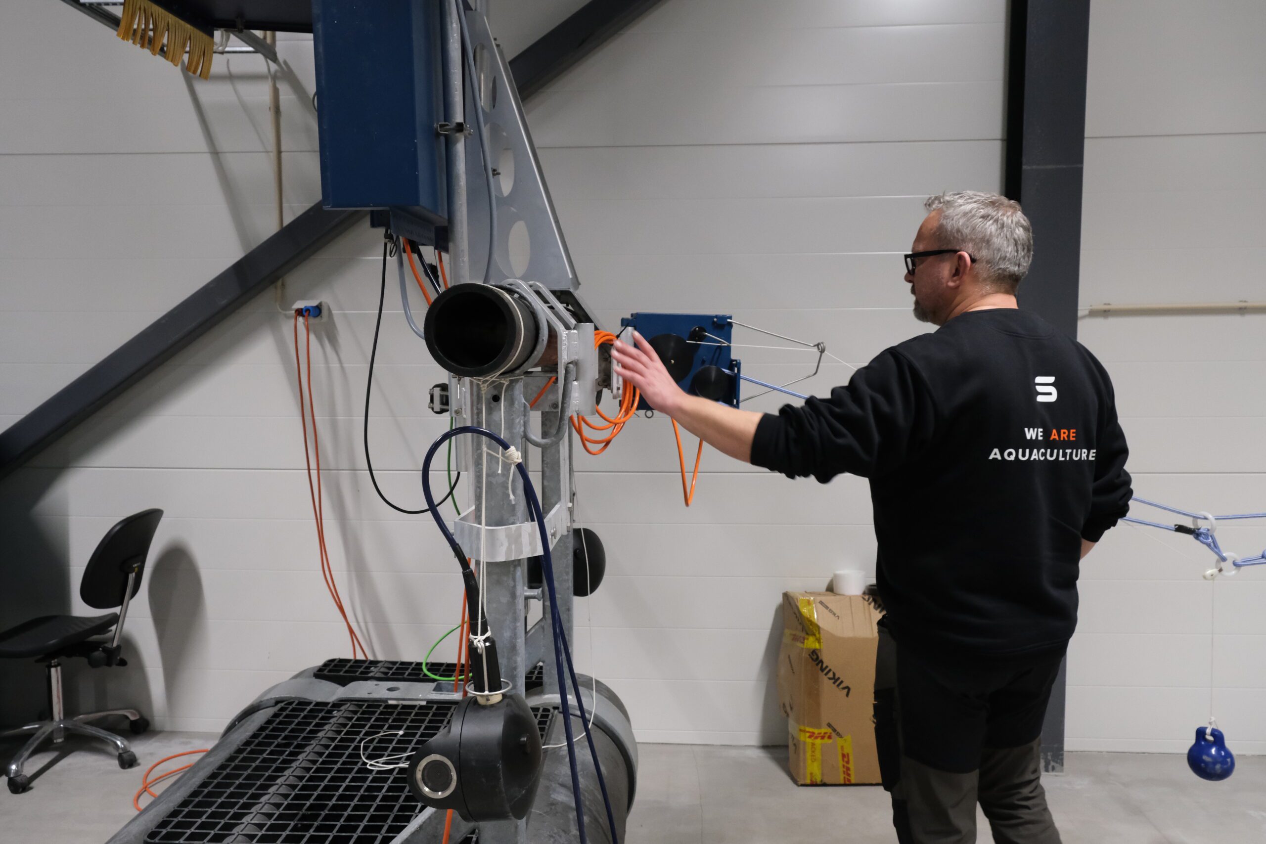 I andre etasje av avdelingen har ScaleAQ bygget en enkel fôringslinje for opplæring. Rør og koblinger er satt opp slik at nye ansatte kan lære hvordan systemet fungerer.