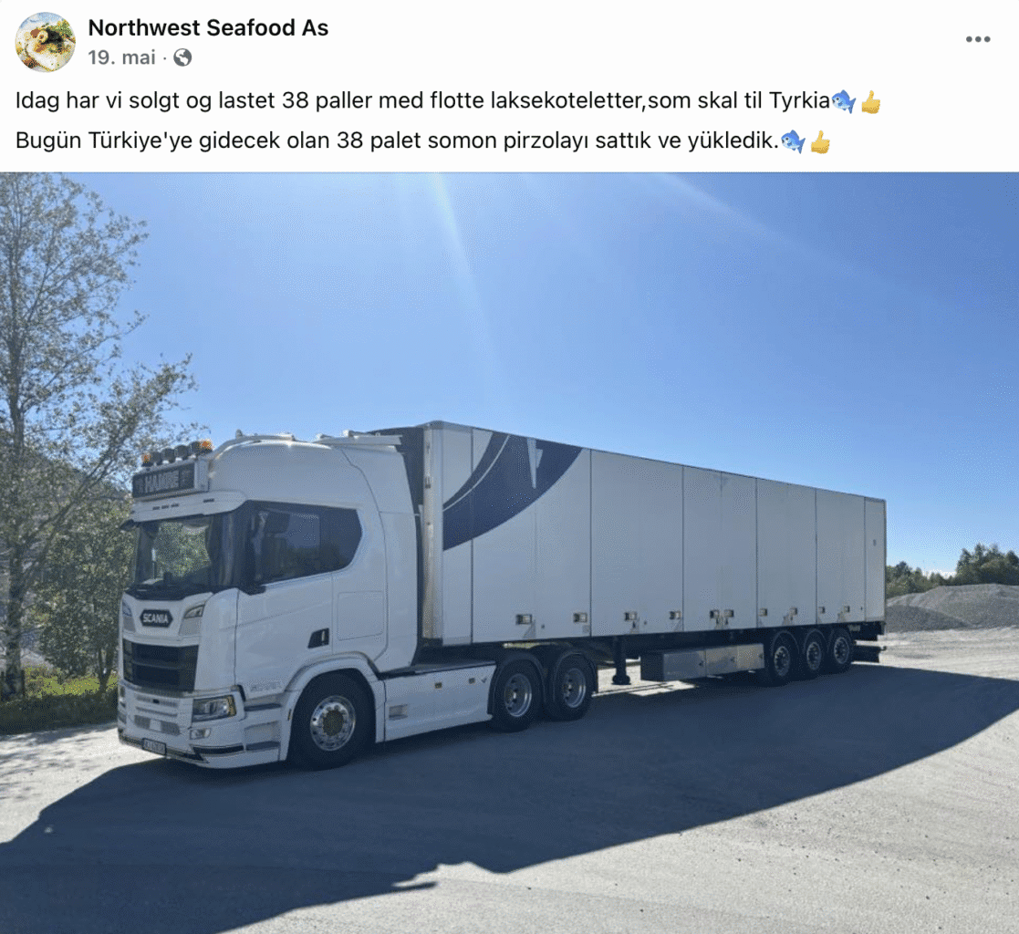 I år har dette endret seg. På selskapets Facebook-sider fremgår det at selskapet den 19. mai var involvert i en leveranse på 38 paller laksekoteletter til Tyrkia. Ifølge Klokk var det ikke Northwest Seafood som sendte fisken ut av landet.