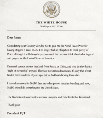 Mandag ble det kjent at Trump har sendt et brev til statsminister Jonas Gahr Støre, hvor han kobler sin interesse for Grønland med det faktum at han ikke ble tidelt Nobels fredspris.