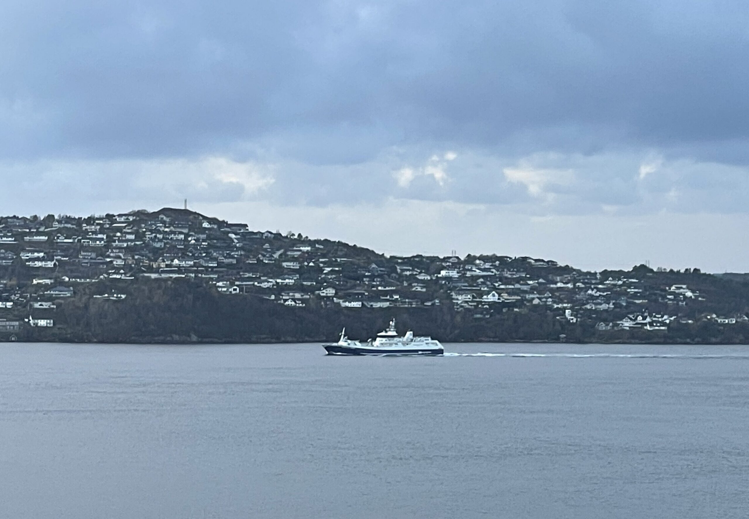 I løpet av helgen har “Norwegian Gannet” stampet sørover, i 14 knops fart, langs kysten av Nordland, Trøndelag og Vestlandet. Fra et oppdrettsanlegg ved Harstad.