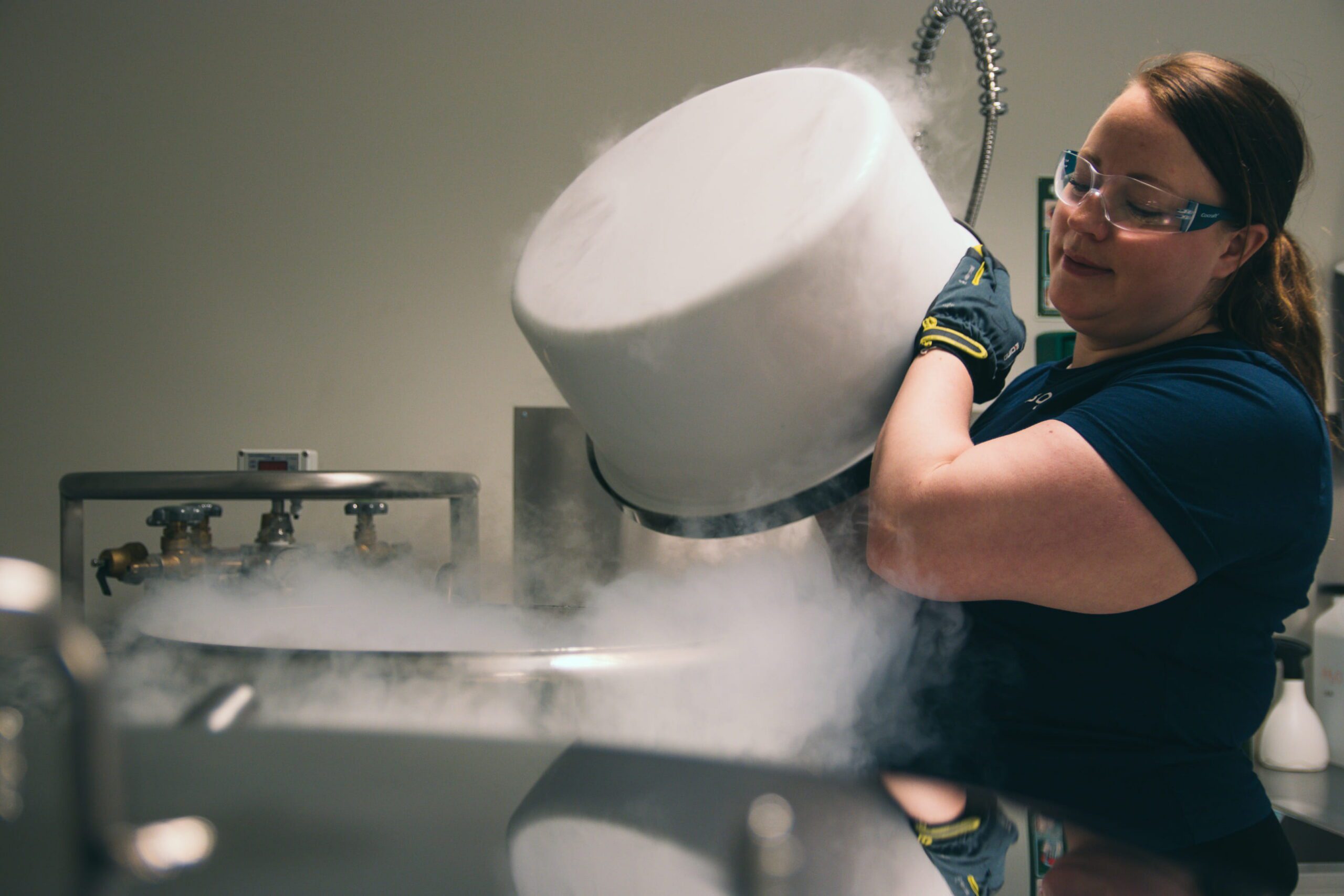 Når prøvene er godkjent, fylles materialet i små plaststrå før det gjennomgår en kontrollert nedfrysningsprosess i flytende nitrogen på -196ºC.