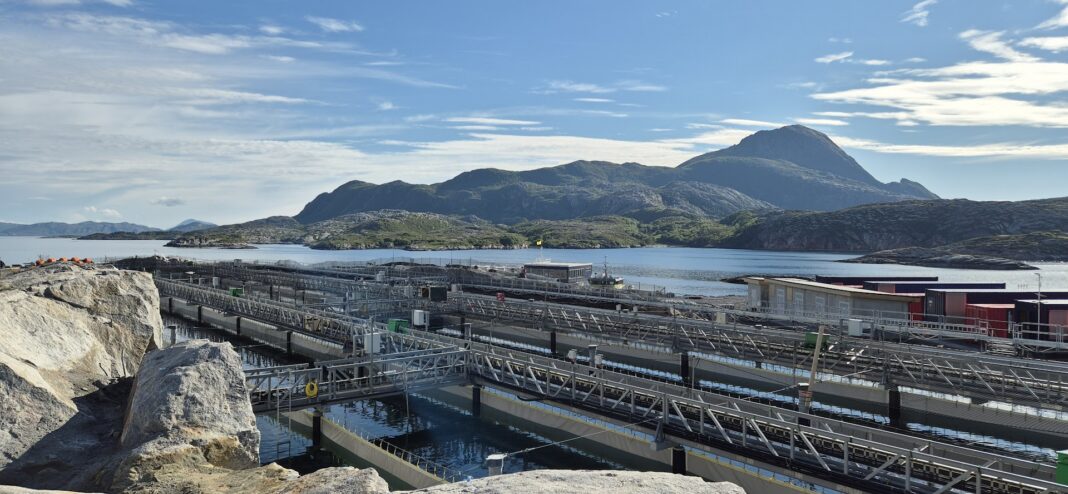 Utbyggingen av anlegget er nå i siste fase, med to av tre produksjonsbasseng ferdigstilt, i rute til planlagt opptrapping til full kapasitet mot 16.000 tonn årlig fra 2028.