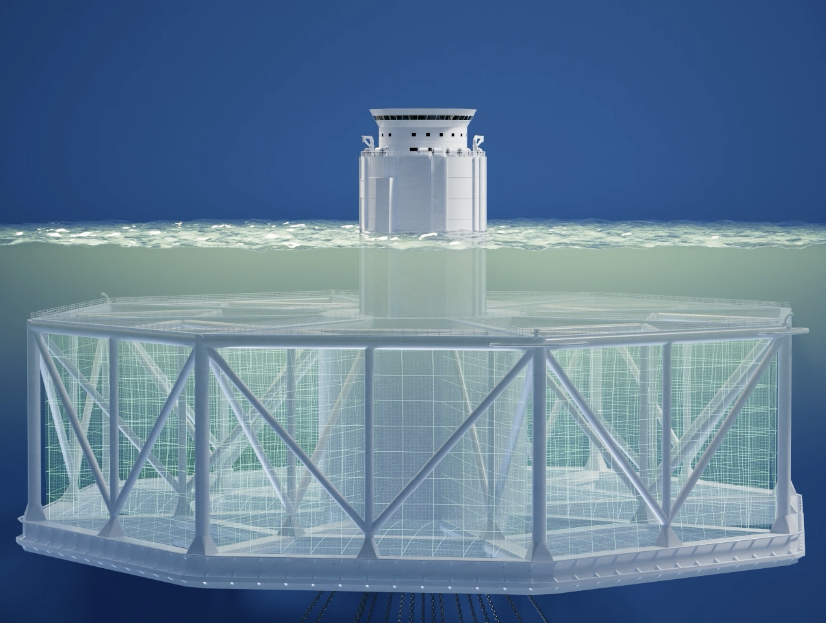 Med teknologi hentet fra olje- og gassindustrien har Aqualoop designet en nedsenkbar havrigg som skal kunne produsere opptil 15.000 tonn laks i året og tåle stormer som overgår virkeligheten.