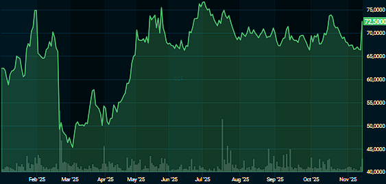 Grieg-aksjen stiger kraftig, med hele ni prosent, i livlig handel på Oslo Børs torsdag formiddag.