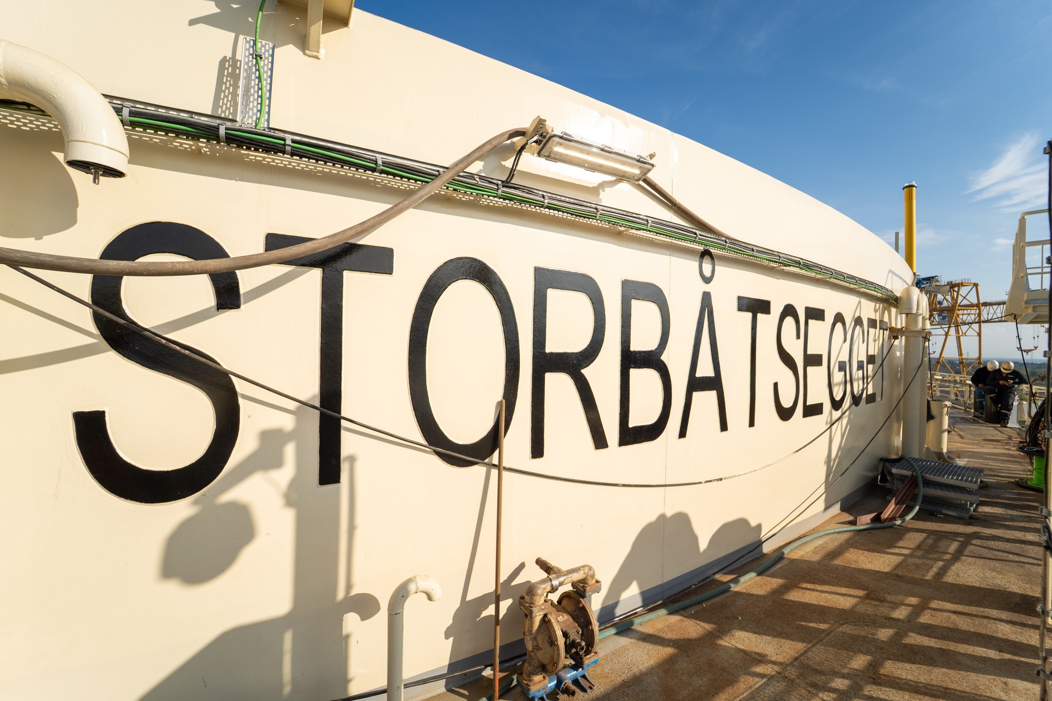 “Nymalte bokstaver med navnet Storbåtsegget skinte i ettermiddagssolen, og kursen er nå satt mot Hadsel og Vesterålen,” skriver Nordlaks.