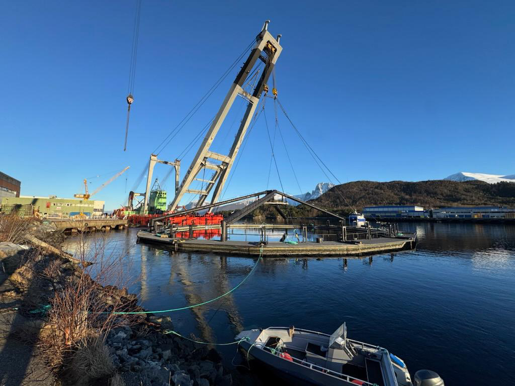 Den enorme konstruksjonen skal etter hvert fraktes til Hofseth sin oppdrettslokasjon på Vindsnes i Storfjorden, hvor den skal tas i bruk til produksjon av laks.