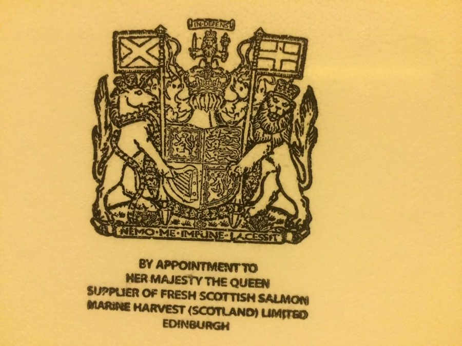 “Som hoffleverandør til Buckingham Palace var Marine Harvest i et celebert selskap, sammen med andre eksklusive merkevareleverandører som Cadbury, Twinings, Aston Martin, Burberry, Krug champagne, Laphroaig distillery, Ritz – og Unilever, fremgår det av boken “Goldfinger – Historien om Mowi”.