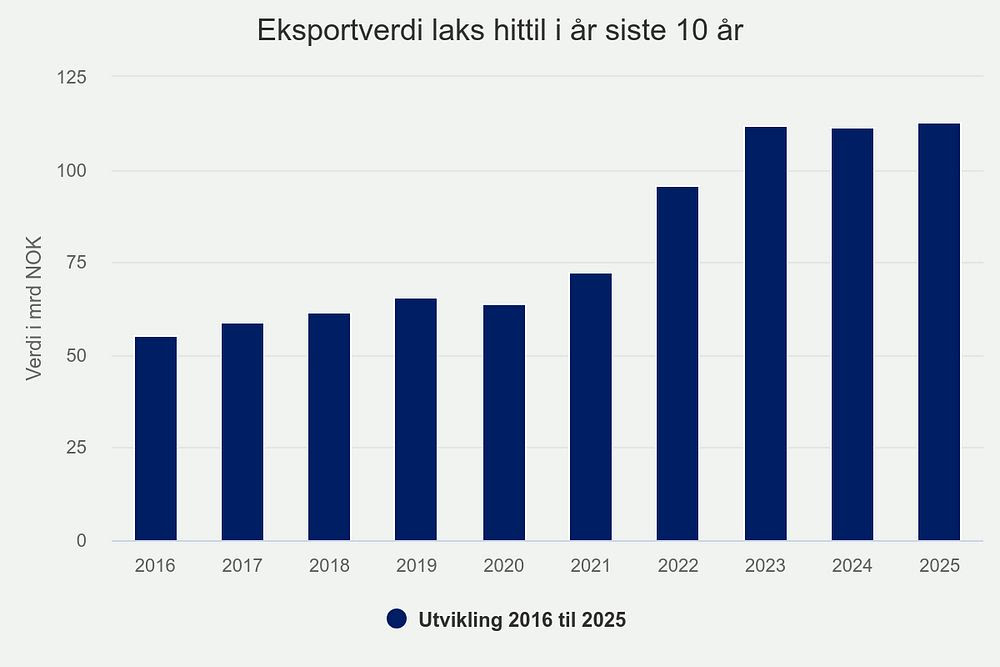 Hvis eksportverdien i desember blir på samme nivå som i fjor, vil totaleksporten av sjømat i 2025 passere 180 milliarder kroner.