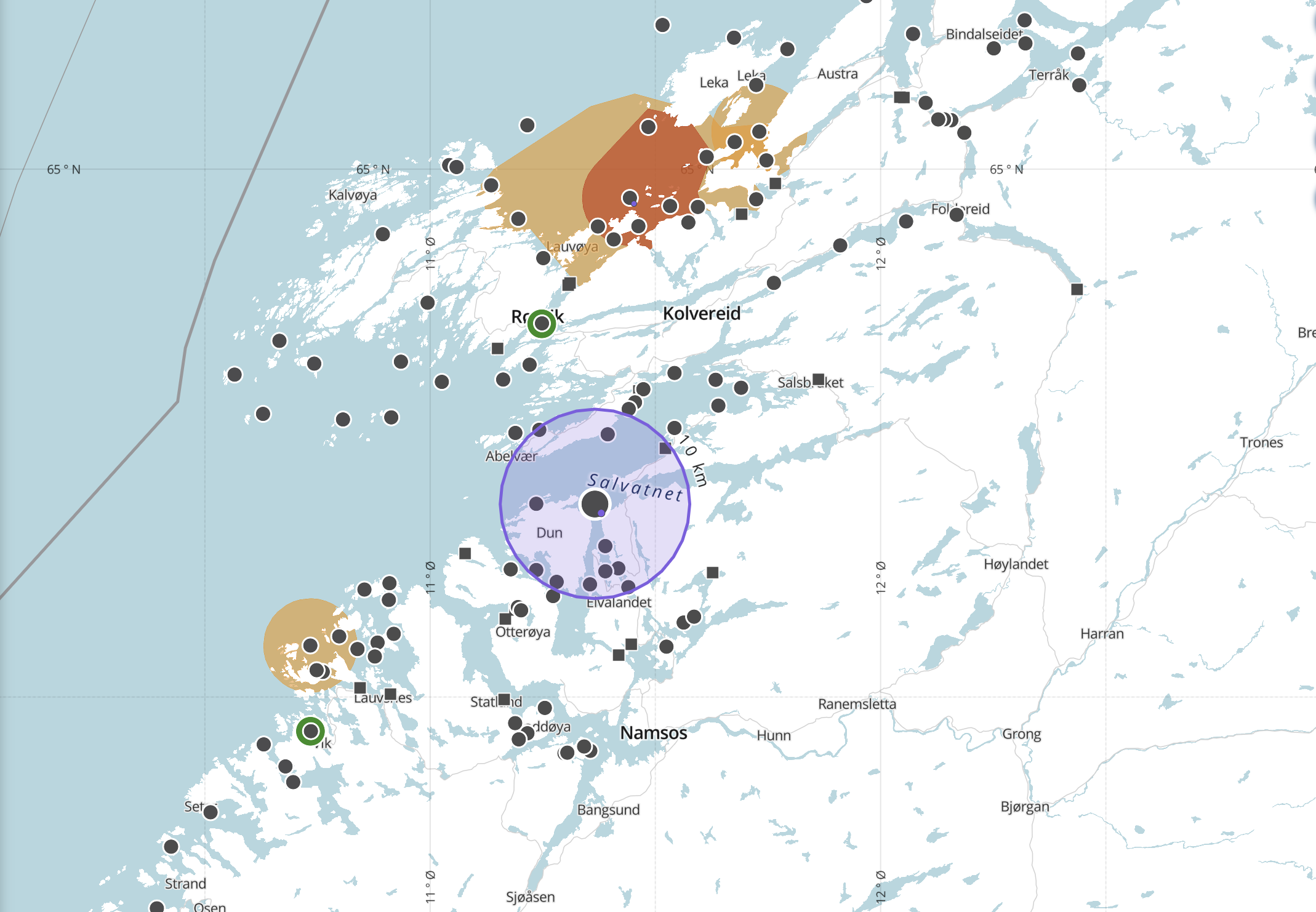 Lokale tilpasninger ut fra antall lokaliteter i området, avstandsforhold og strømforhold etc. vil legges til grunn for restriksjonssonens utbredelse.