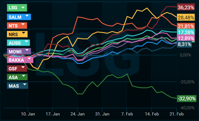 Mest opp av alle lakseaksjene i år er imidlertid Grieg Seafood, som tradisjonelt sett har vært en “høykost-produsent”. Et underliggende prisløft vil normalt slå hardest på selskaper med svak drift.
