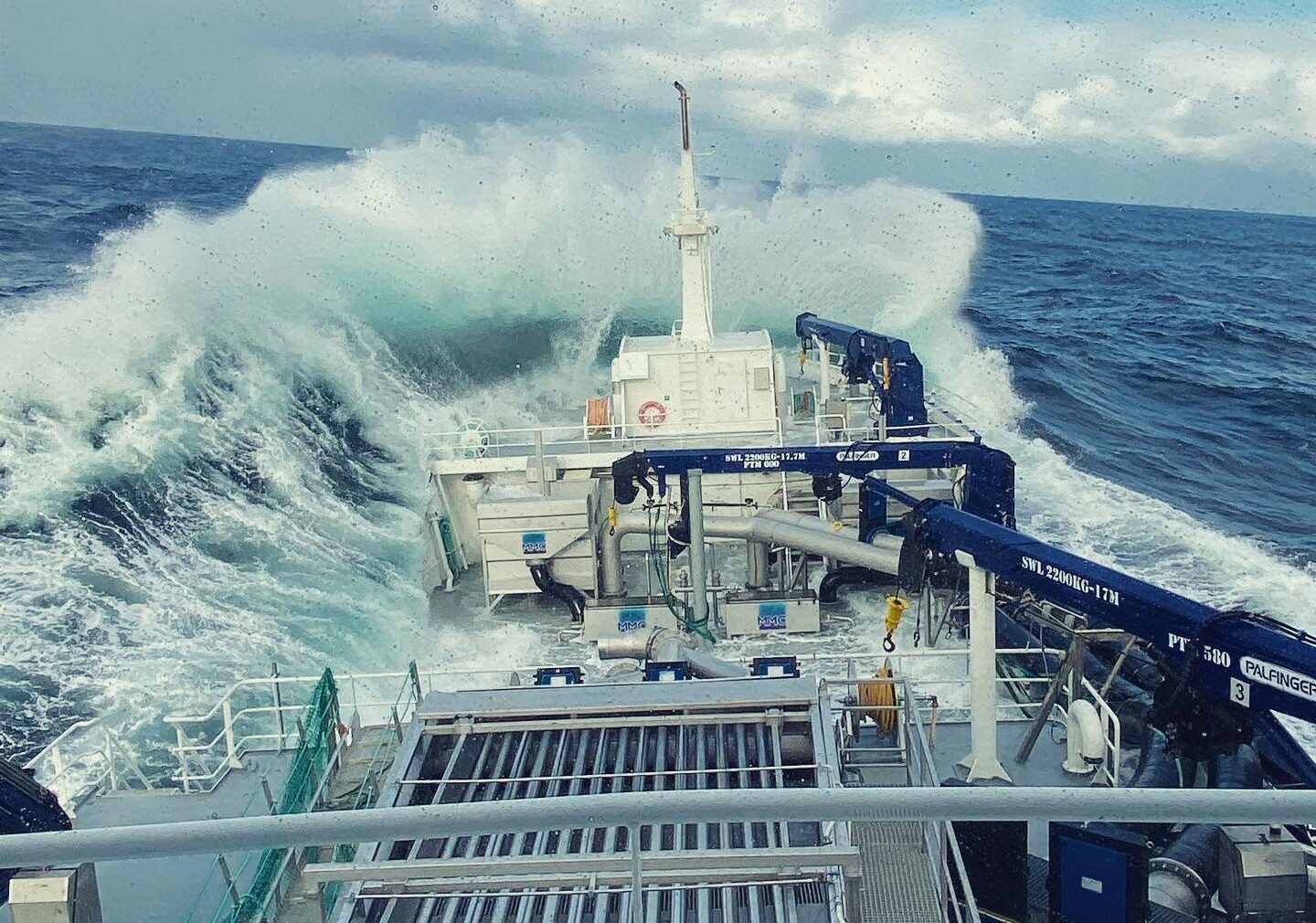 Lande forteller at de flere ganger har opplevd at de voldsomme kreftene ute på Stadhavet har revet vekk fastsveist dekksutstyr og inventar. Og selv inne på broen merkes kreftene fra Stadhavet godt.
