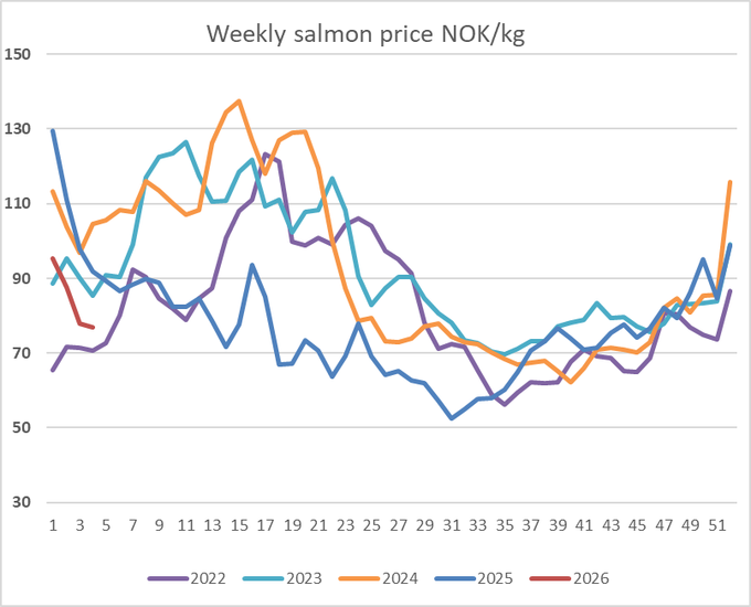 – Der er nok fisk å få tak i, og det er et problem i seg selv. Vi får se om folk har fått tømt seg litt. Mange er blitt skremt, både oppdretterne og kundene, av prisene i forhold til forventningene.