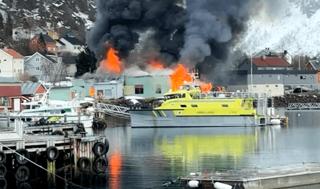 Polarfeed evakuert etter storbrann i Øksfjord