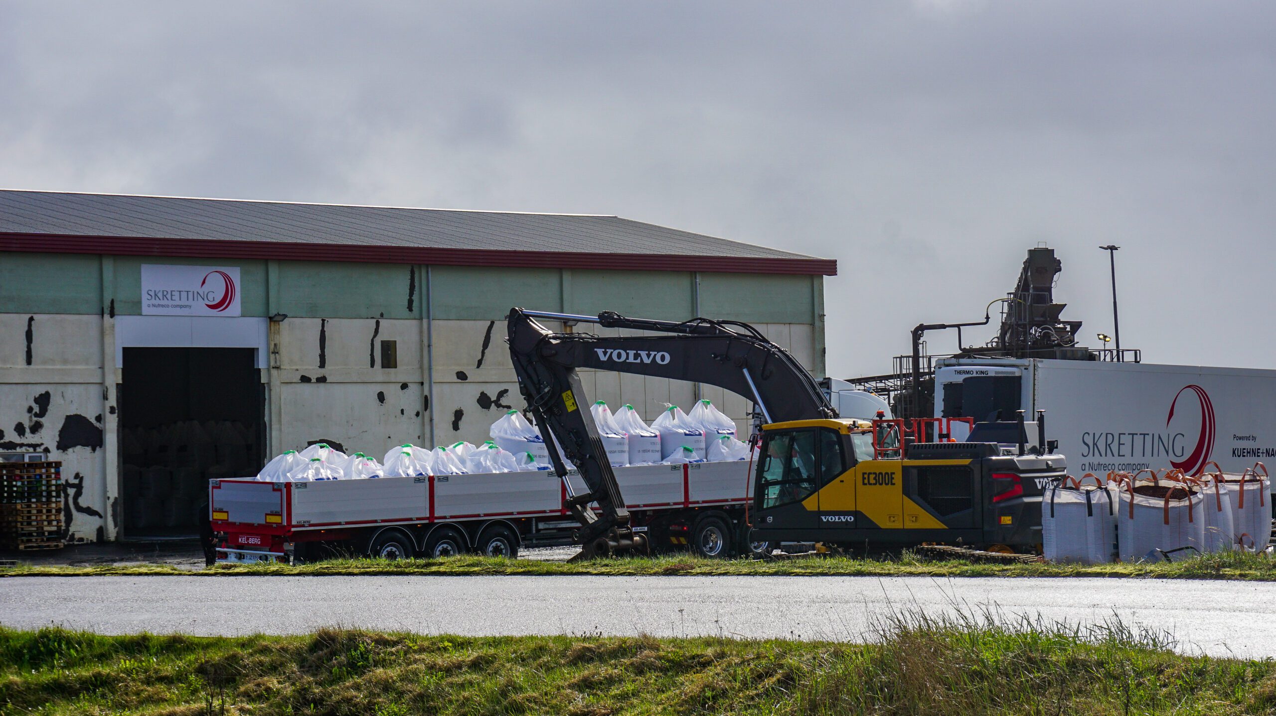 Import av russiske fôrråvarer er ikke ulovlig. Det er «bare» kontroversielt, all den tid Norge støtter Ukraina i krigen. Her lastes Mowi-fôr ombord på fôrfartøyet «With Harvest». Foto: Tina Totland Jenssen