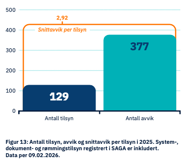 Majoriteten av avvikene går på aktørenes rutiner og avvikssystem, dokumentasjon og skriftliggjøring, risikokartlegging, planer og tiltak – og tilpasning til virksomhetene.