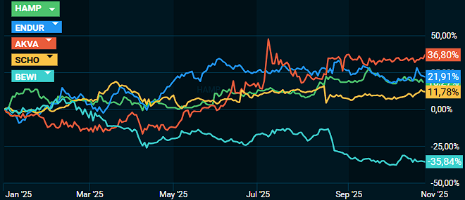 Mens de store lakseoppdretterne har nøyd seg med en kursoppgang på linje med totalindeksen på Oslo Børs, har AKVA group steget nær tre ganger mer.