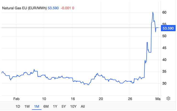 Gassprisene har skutt i været etter at krigen brøt ut i helgen.