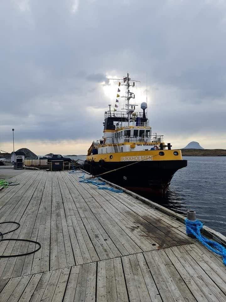 “Bukkholmen”, tidligere kalt “Neptun 10”, er en 40 meter lang og 11,8 meter bred taubåt bygget i 2010, ifølge Marine Traffic.