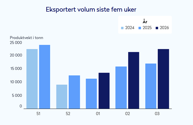Det er hele 57 prosent mer enn i samme periode i 2025. Kun Polen har kjøpt mer norsk laks enn Kina i 2026.