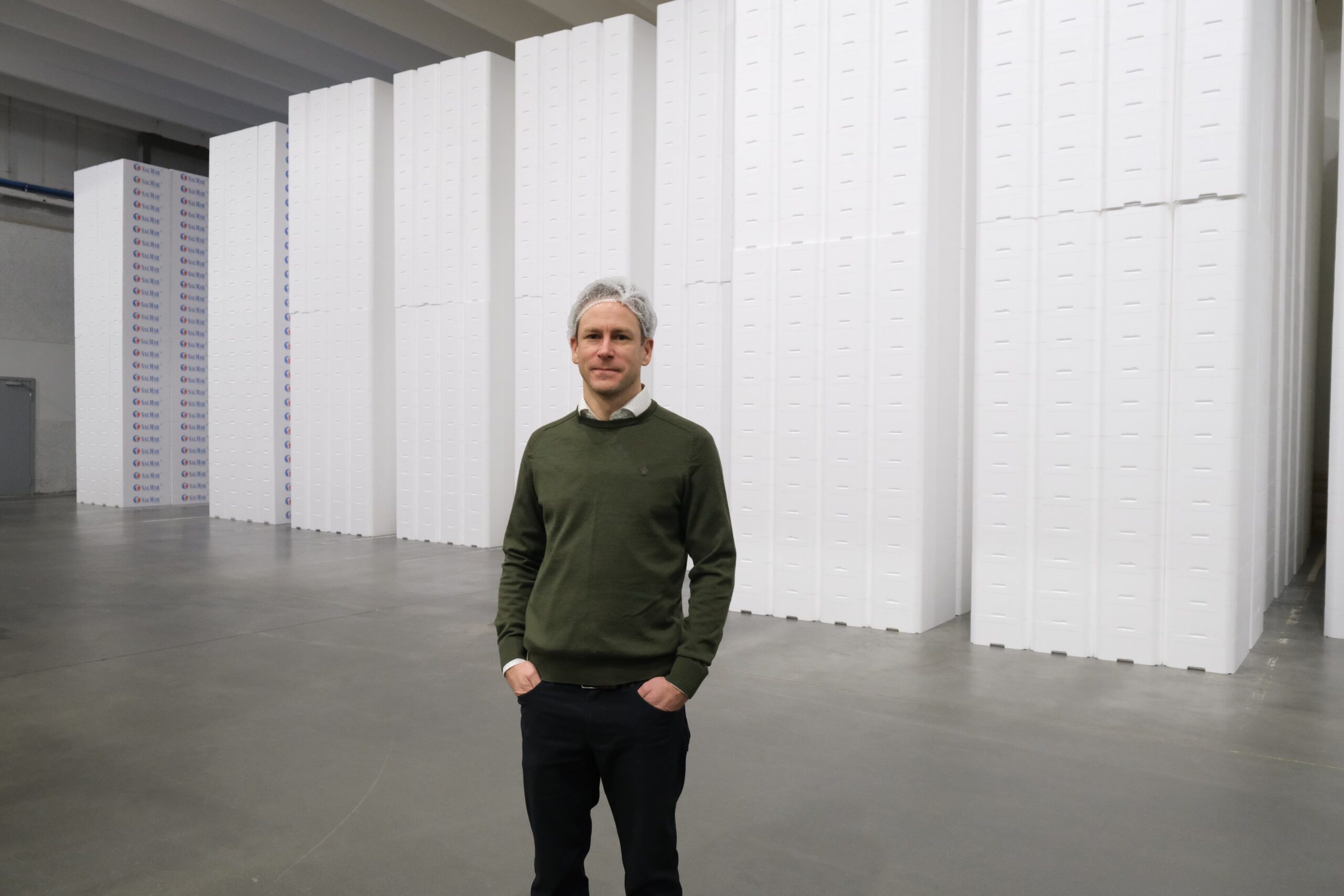 Når tusenvis av tonn hoper seg opp, blir det til et fysisk fjell av hvite bokser som må håndteres. Derfor har BEWI en fabrikk i nærheten av foredlingsanlegget som tar imot all plasten.
